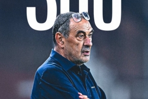 意甲官方社媒晒出萨里海报,祝贺萨里执教意甲300场里程碑。