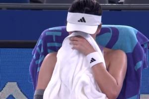体育资讯10月06日讯 武汉网球公开赛女单首轮,王欣瑜0-2负于日本选手内岛萌夏,止步女单首轮。比赛中王欣瑜接受腰部医疗暂停,一度难以控制情绪,用毛巾捂住面部落泪。