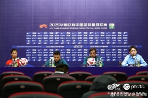10月25日19:00,2025华润饮料中超联赛第二十八轮,河南俱乐部酒祖杜康将在主场对阵浙江俱乐部绿城,河南俱乐部酒祖杜康主教练拉莫斯携球员杨意林出席赛前新闻发布会。