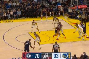 库里命中三分之后一回合,科尔将其换下。