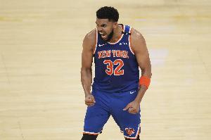 第三节比赛,上半场低迷的唐斯终于找回状态,进攻端连续杀内线还能造杀伤,单节6中4,罚球7中7砍下15分5篮板。