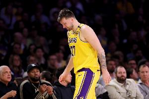 GIF-东契奇拆炸弹压哨三分投出离谱三不沾