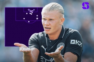 数据统计显示,哈兰德本赛季的14次射门、5次射正(并列)、3粒进球、预期进球值3.86,均为本赛季英超联赛同期最高。